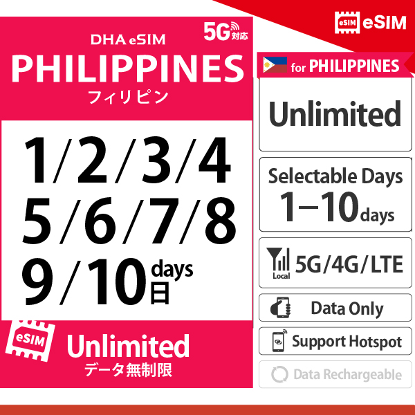 [DHA eSIM] Philippines | Unlimited Data | 1-10 Days | Prepaid eSIM