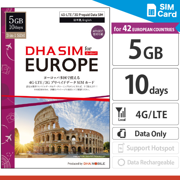 【DHA SIM】 For 42 European Countries 5GB / 10 Days Prepaid SIM Card