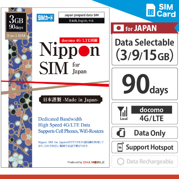 [Nippon SIM] Japan | 90days | 3GB / 9GB / 15GB | docomo Network | Prepaid SIM card