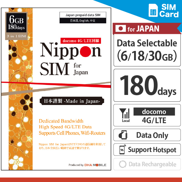 [Nippon SIM] Japan | 180days | 6GB / 18GB / 30GB | docomo Network | Prepaid SIM card
