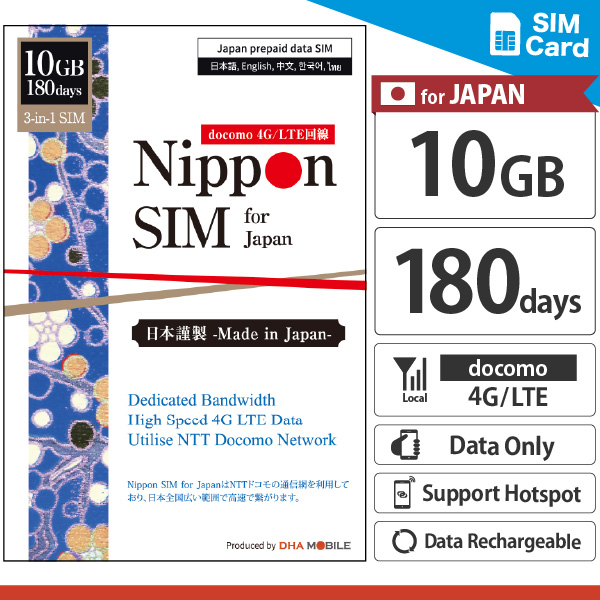 [Nippon SIM] Japan | 180days | 10GB | docomo Network | Extendable | Prepaid SIM card
