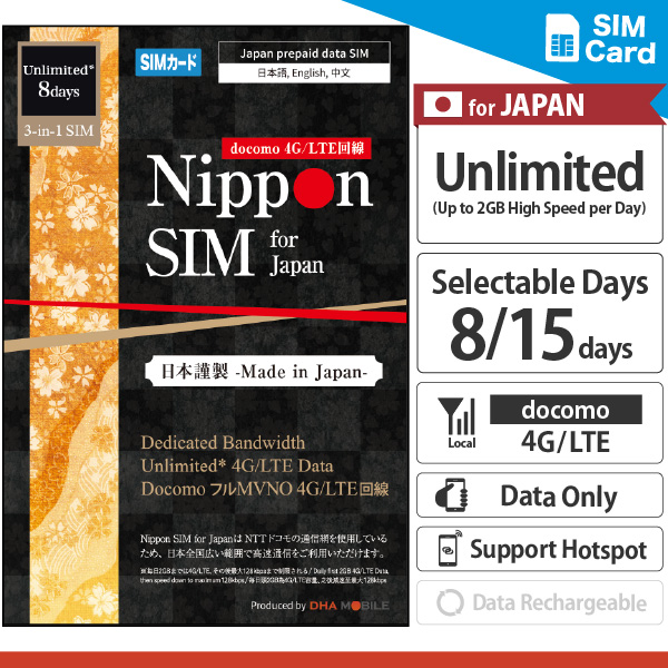 [Nippon SIM] Japan | 8 / 15days | Unlimited* Data | docomo Network | Prepaid SIM card