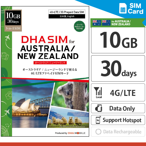 【DHA SIM】 for Australia/New Zealand 10GB/30 Days Prepaid SIM Card
