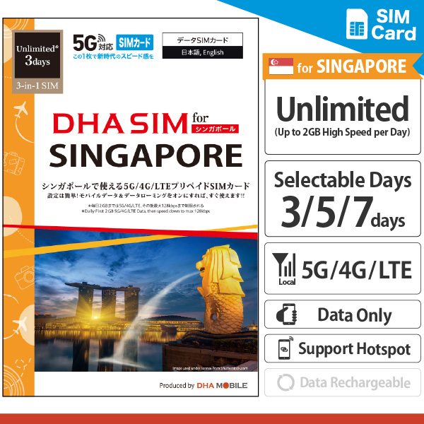【DHA SIM】 For Singapore Unlimited Data (Up to 2GB High Speed per Day) Selectable Days (3 / 5 / 7) Prepaid SIM Card
