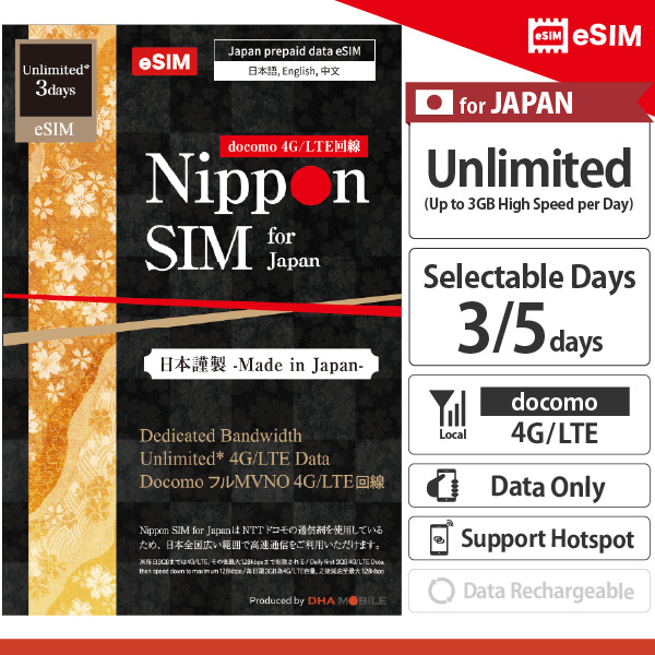 [Nippon eSIM] Japan | 3 / 5days | Unlimited* Data | docomo Network | Prepaid eSIM