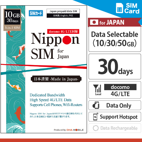 [Nippon SIM] Japan | 30days | 10GB / 30GB / 50GB | docomo Network | Prepaid SIM card