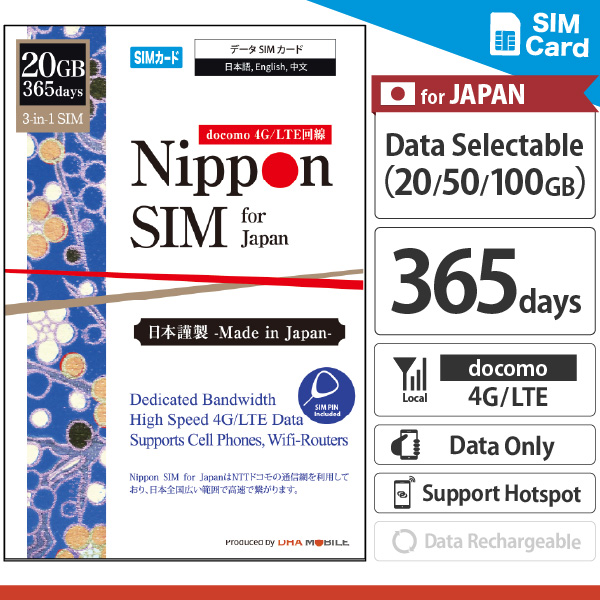 [Nippon SIM] Japan | 365days | 20GB / 50GB / 100GB | docomo Network | Prepaid SIM card