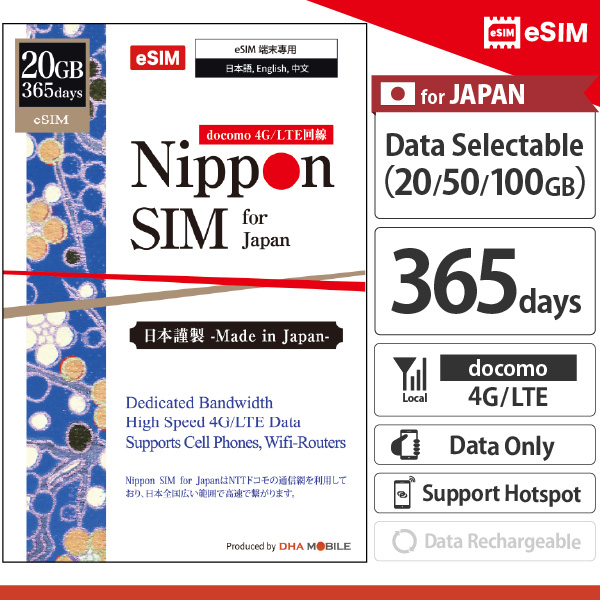 [Nippon eSIM] Japan | 365days | 20GB / 50GB / 100GB | docomo Network | Prepaid eSIM