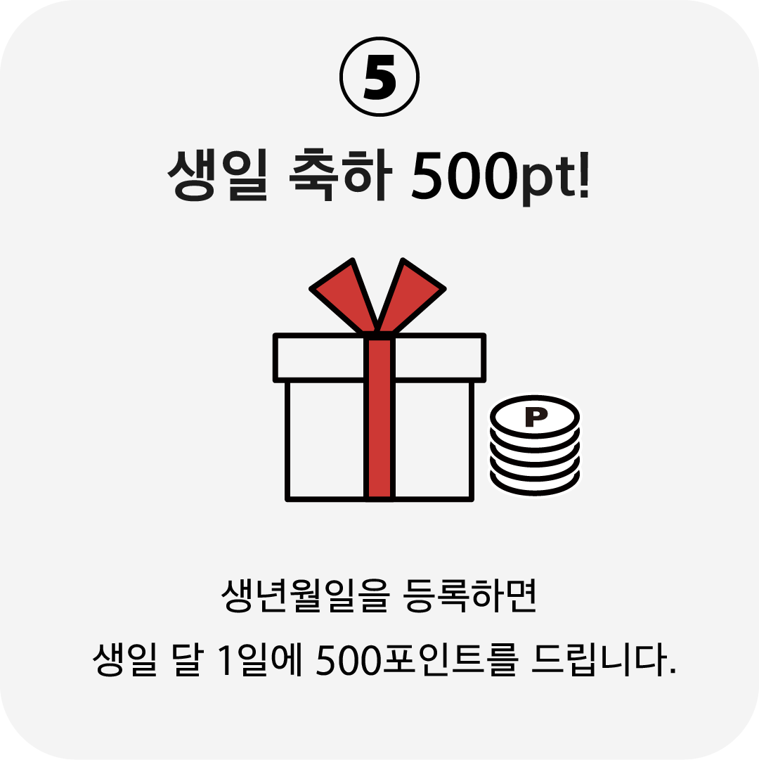 생년월일을 등록하면 생일 달 1일에 500포인트를 드립니다.
