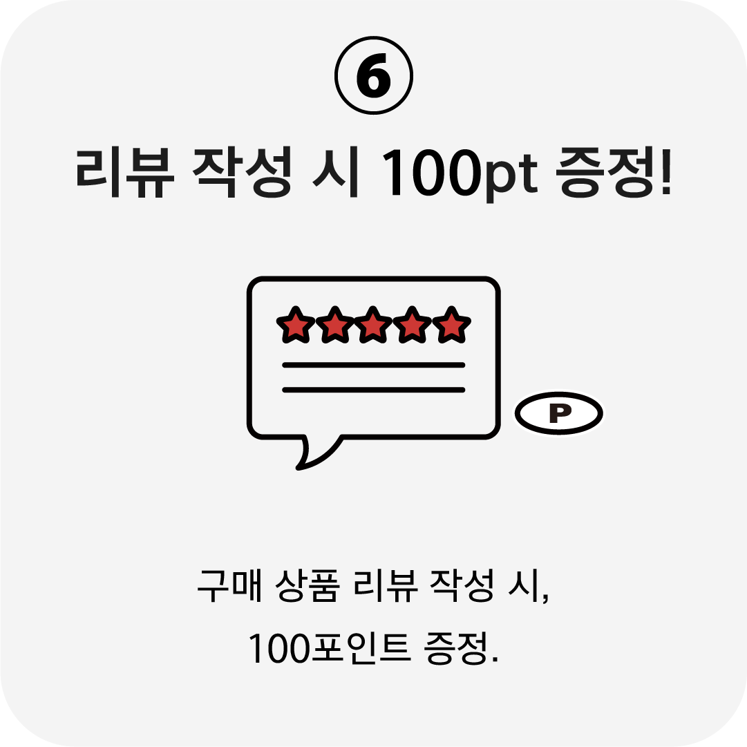 구매 상품 리뷰 작성 시, 100포인트 증정.