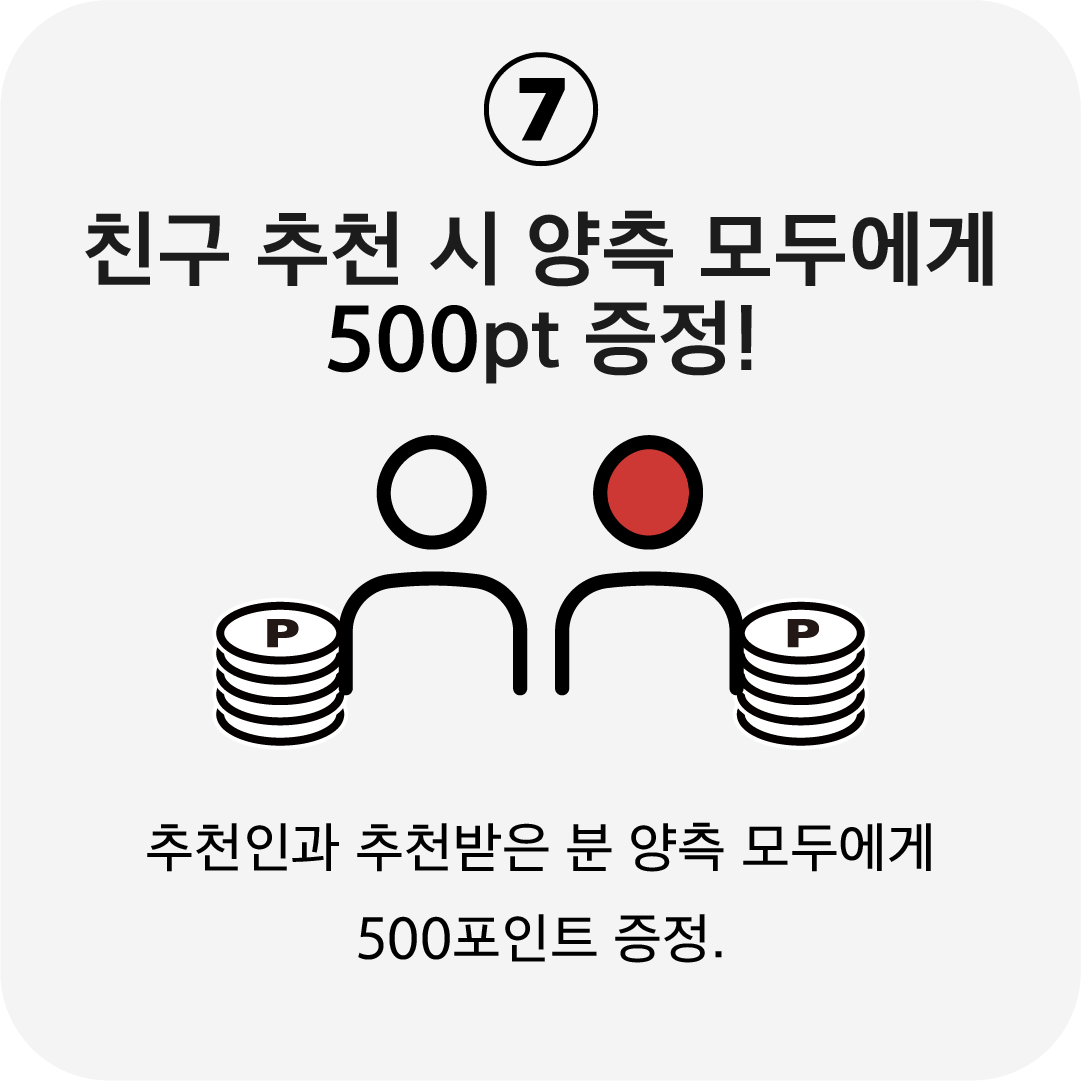 ⑦ 친구 추천 시 양쪽 모두 500포인트 증정!
