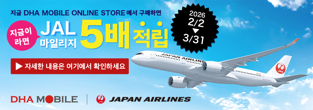 DHA MOBILE 공식 온라인 스토어에서 기간 한정 ‘JAL 마일리지 5배 캠페인’을 실시합니다.