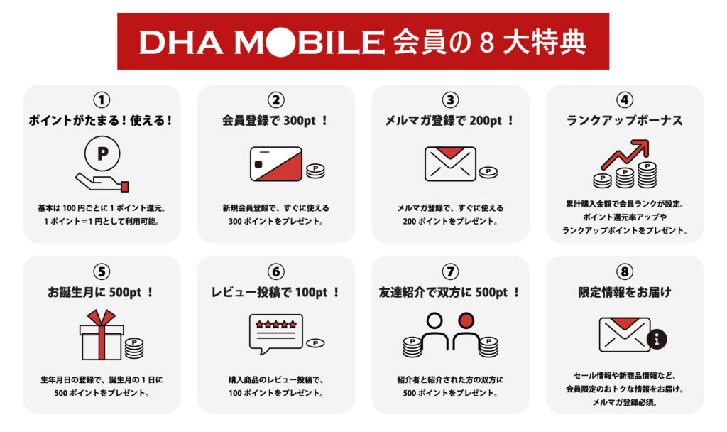 ポイントプログラムと併せて、ぜひこの機会にDHA MOBILEをご利用ください。