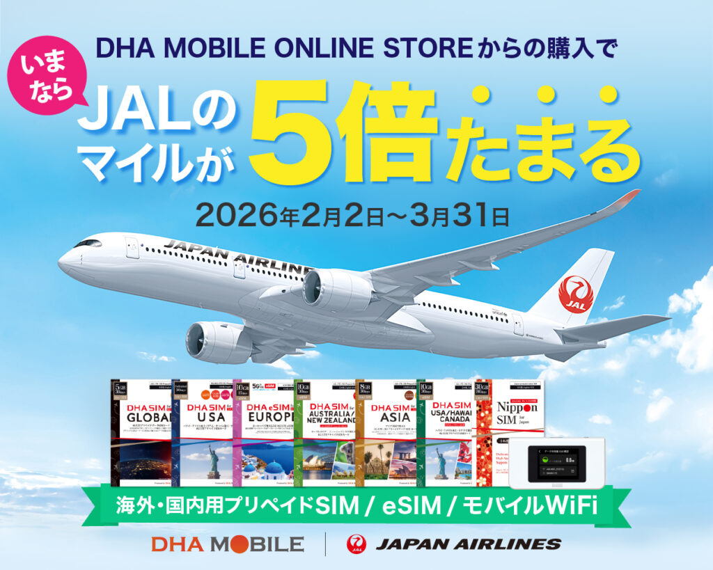 本DHA MOBILE公式オンラインストアにて、期間限定で「JALのマイル5倍キャンペーン」を実施いたします。