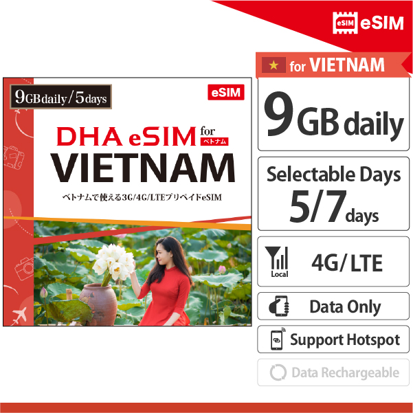 【DHA eSIM】 越南 每日9GB 任選天數(5天 / 7天)行動上網預付eSIM
