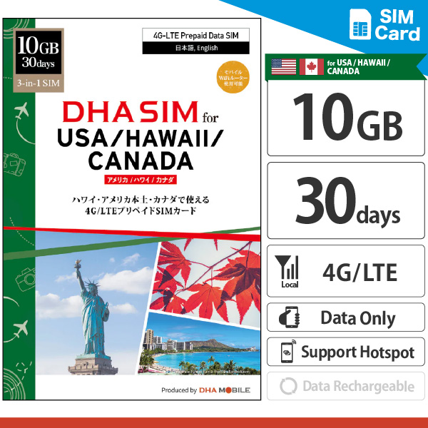 【DHA SIM】 美國本土/夏威夷/加拿大用 10GB/30天預付SIM卡