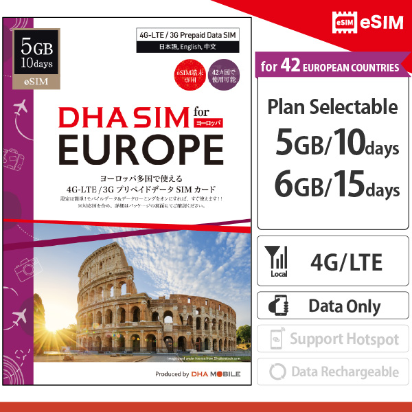 【DHA SIM】 歐洲42國 5GB / 10天 行動上網預付SIM卡