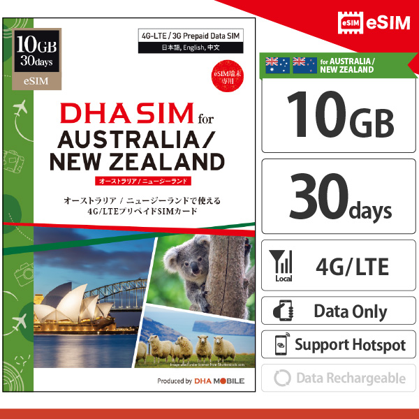 【DHA eSIM】 澳洲/紐西蘭用 10GB/30天預付eSIM