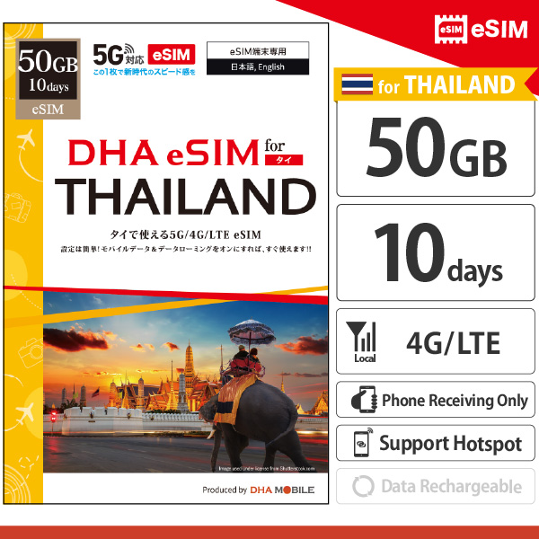 【DHA eSIM】泰國 50GB/10天 附接收專用電話號碼 預付eSIM