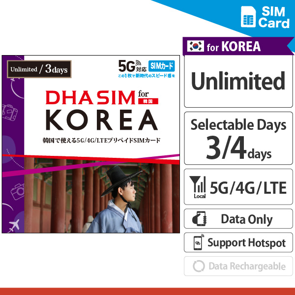 【DHA SIM】 韓國用 行動上網吃到飽 任選天數3天 / 4天)行動上網預付SIM卡
